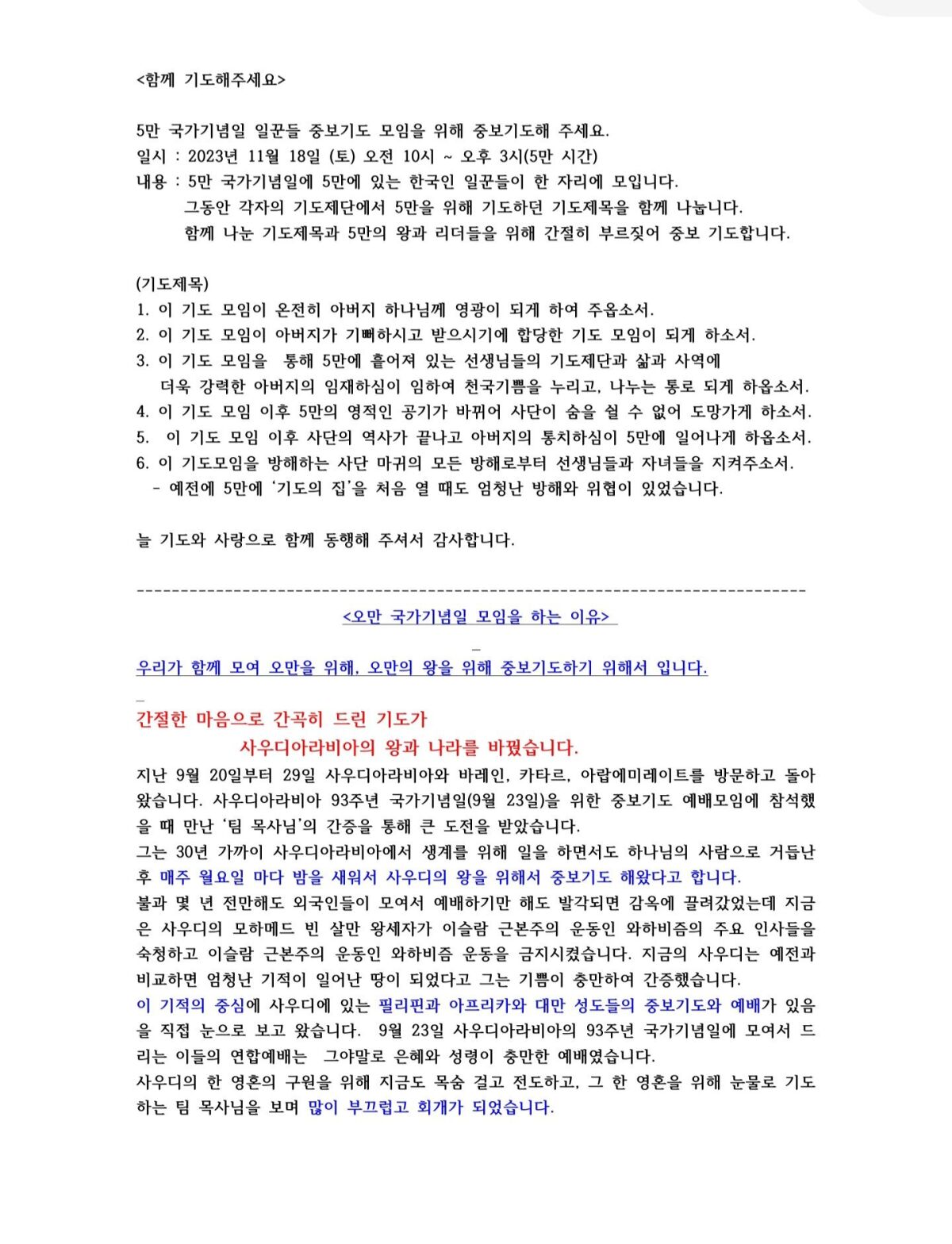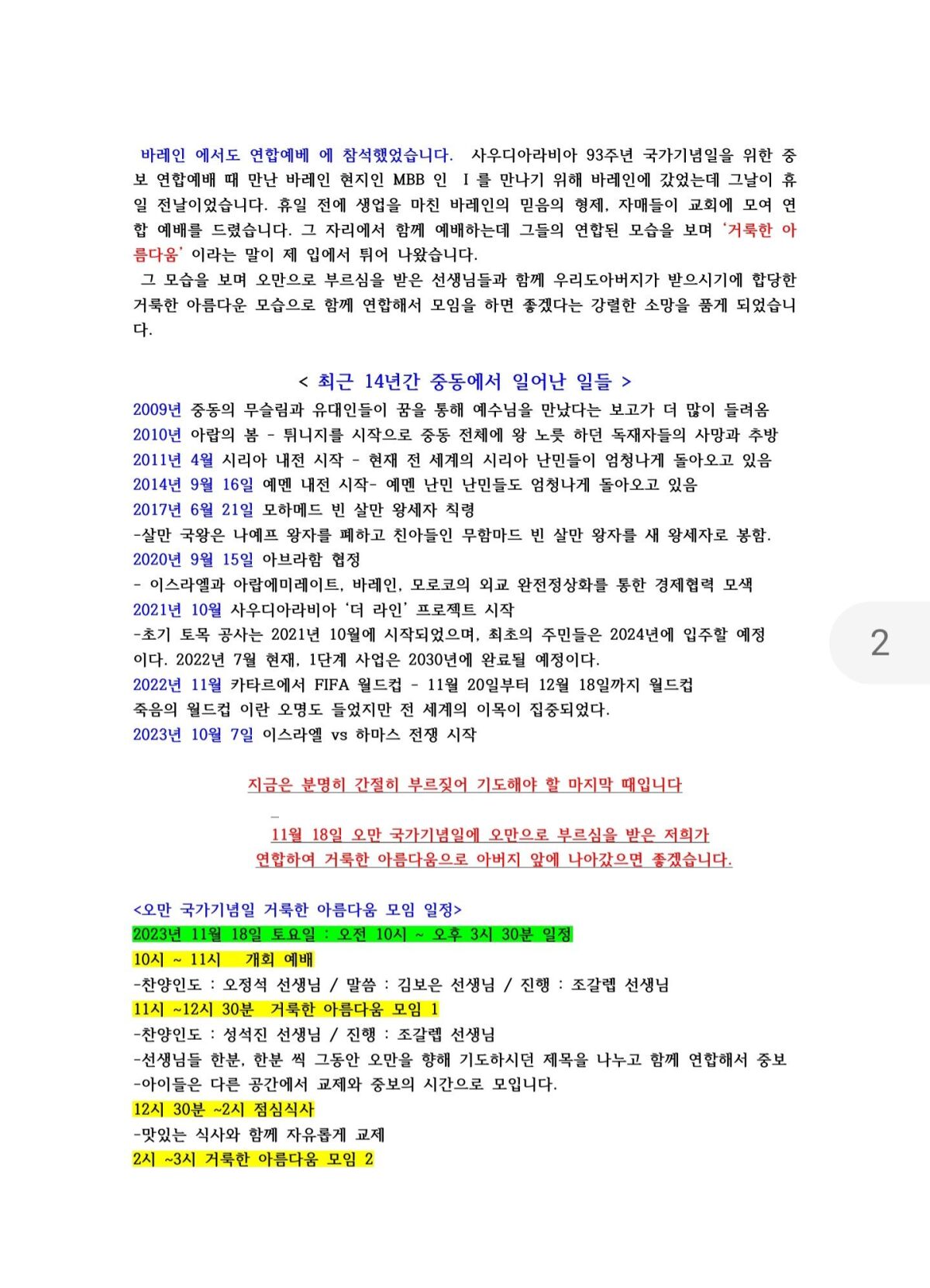 오만 12월 (2023년) 선교편지