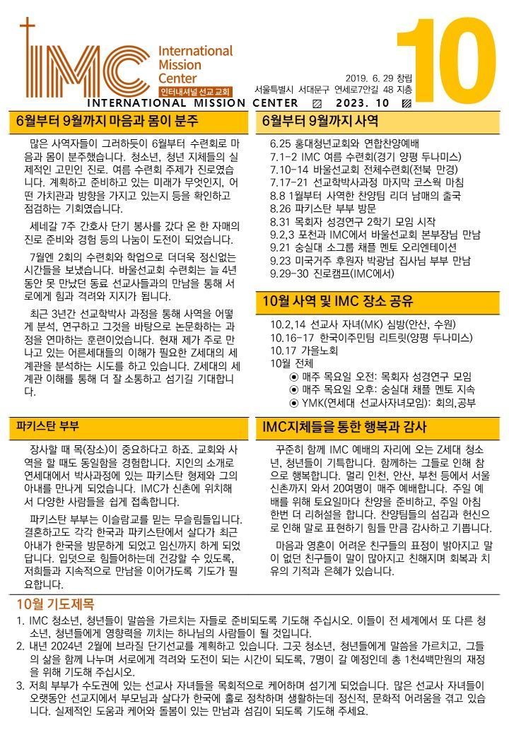 한국(최철 목사님) 선교편지